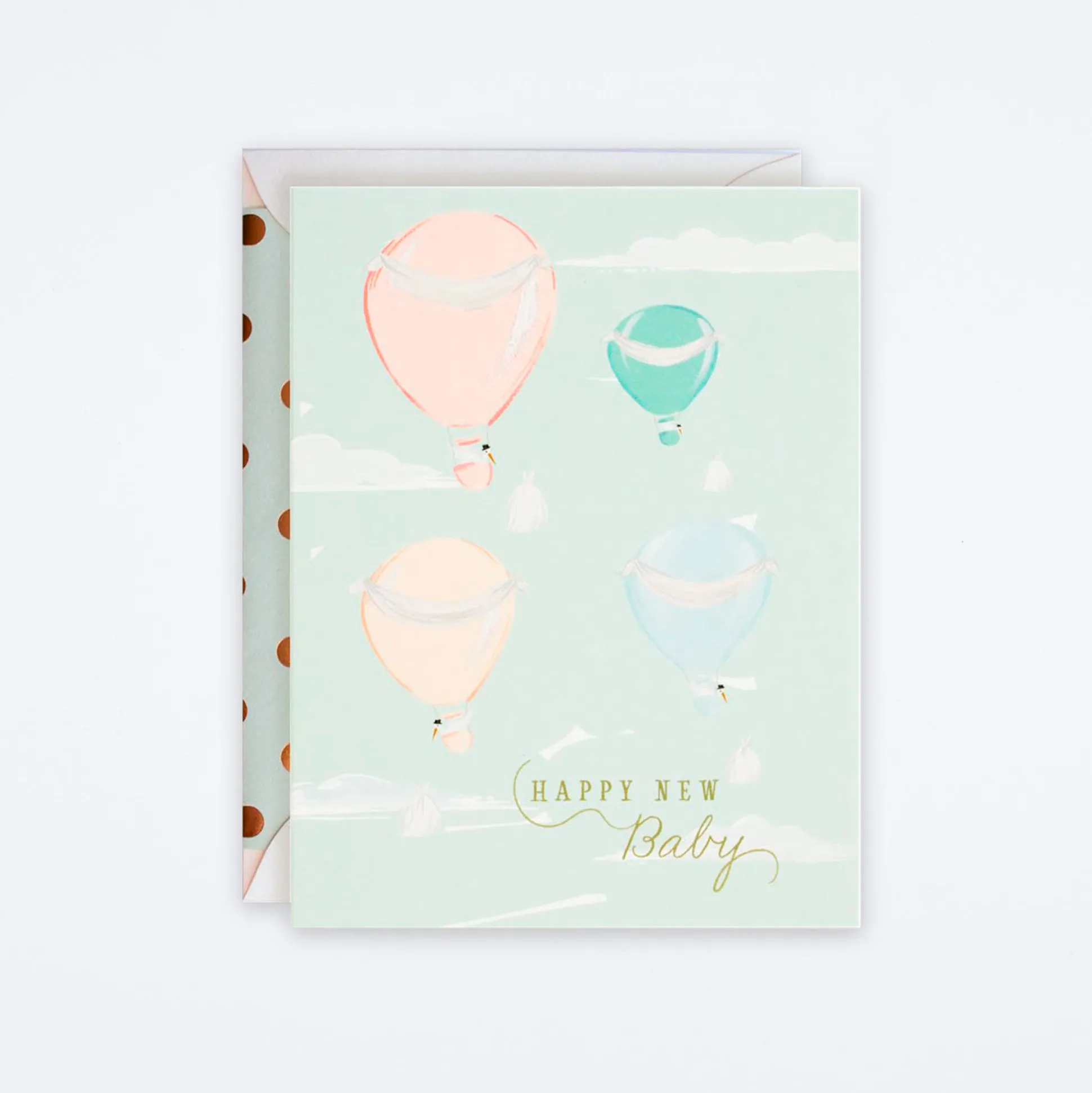 Cream envelope with mint and gold dotted liner
