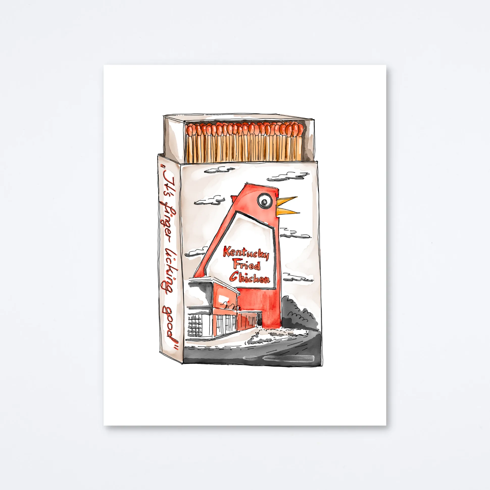 Matchbook print of original watercolor matchbook highlighting the Big Chicken located in Marietta, GA