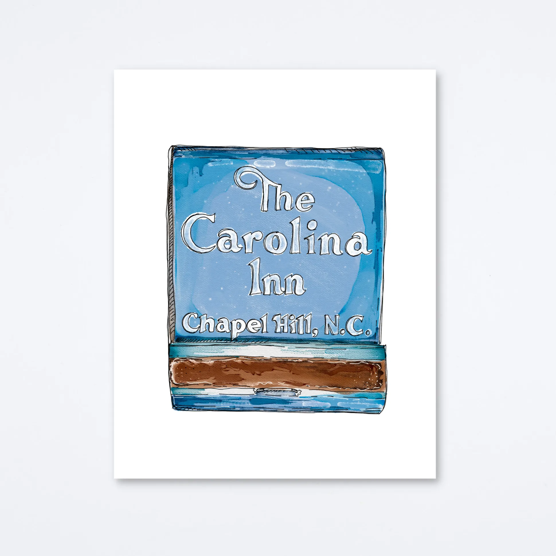 Matchbook print of original watercolor matchbook highlighting the historic Carolina Inn in Chapel Hill, NC