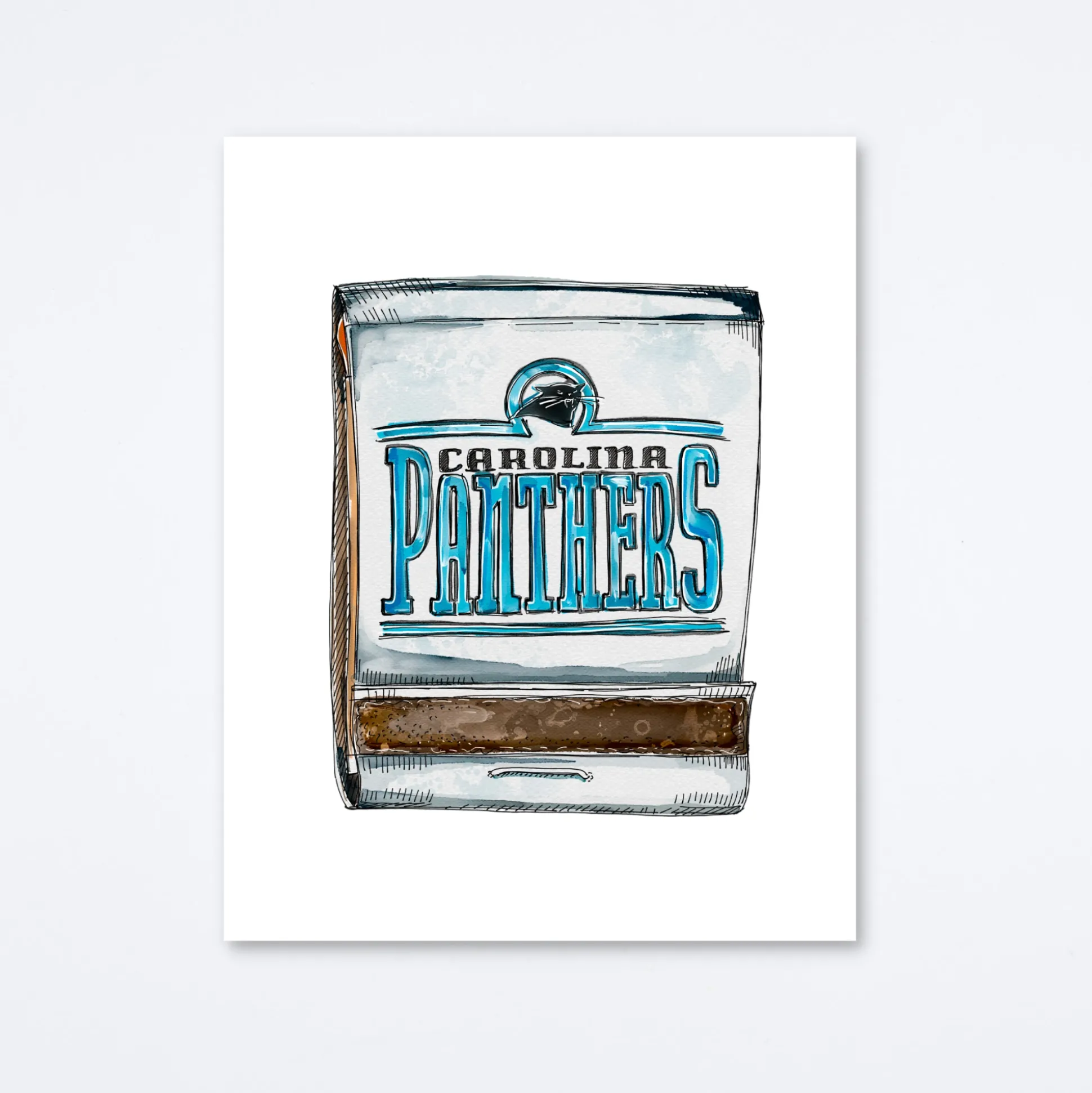 Matchbook print of original watercolor matchbook highlighting the Carolina Panthers National Football League team