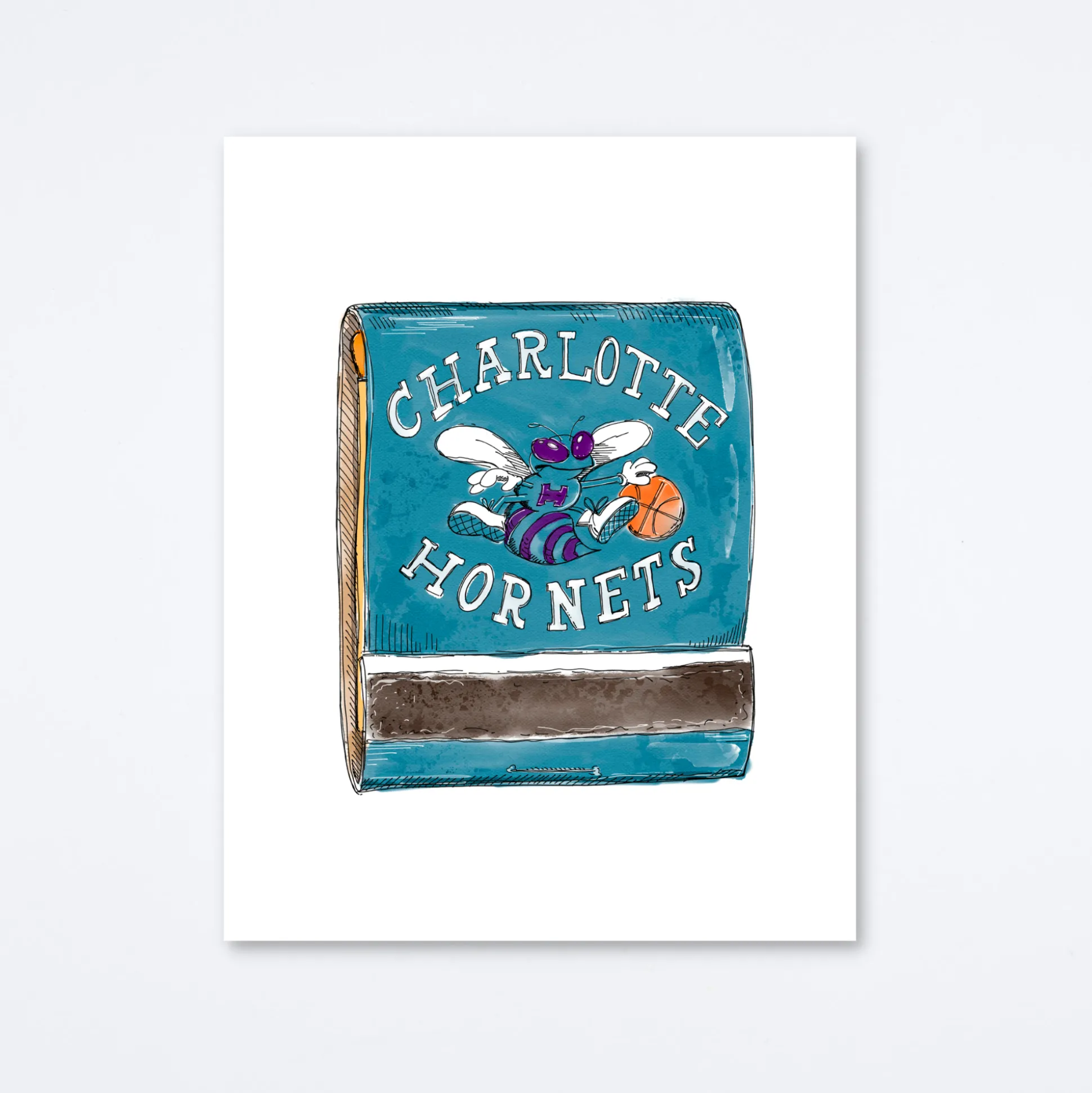 Matchbook print of original watercolor matchbook highlighting the Charlotte Hornets Basketball Team