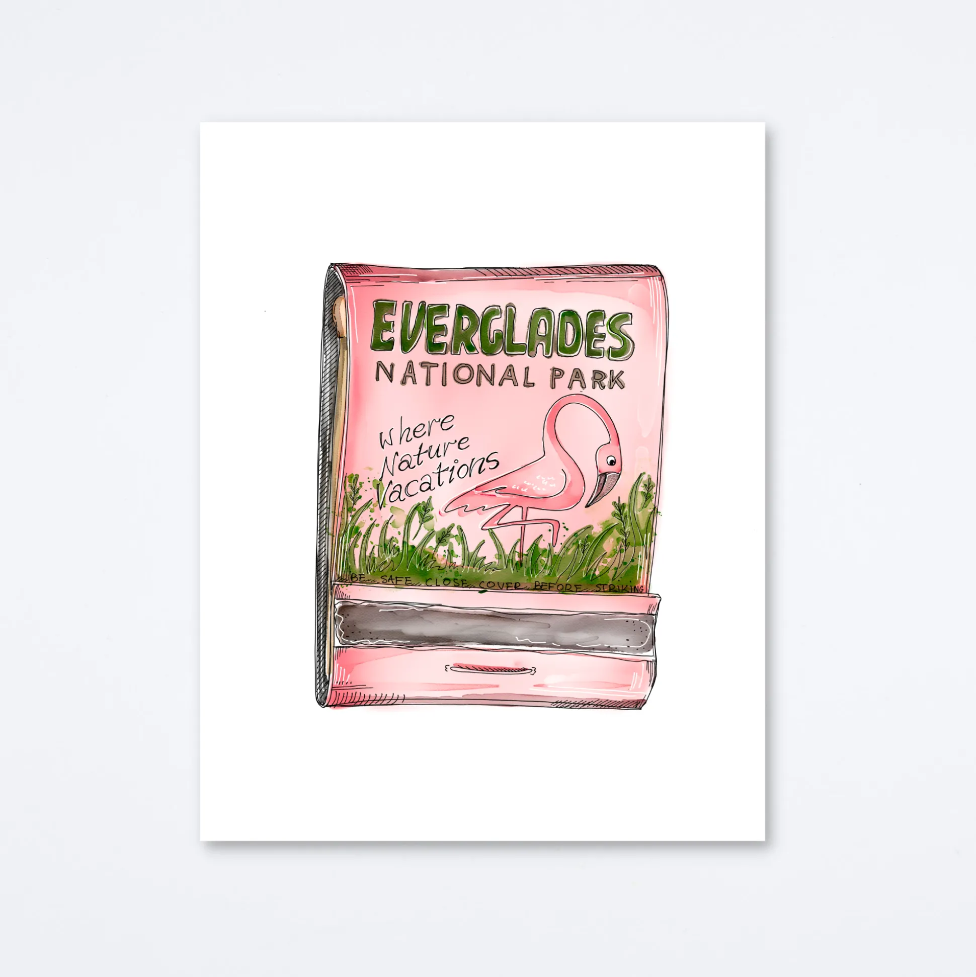 Matchbook print of original watercolor matchbook highlighting the Everglades National Park in Florida