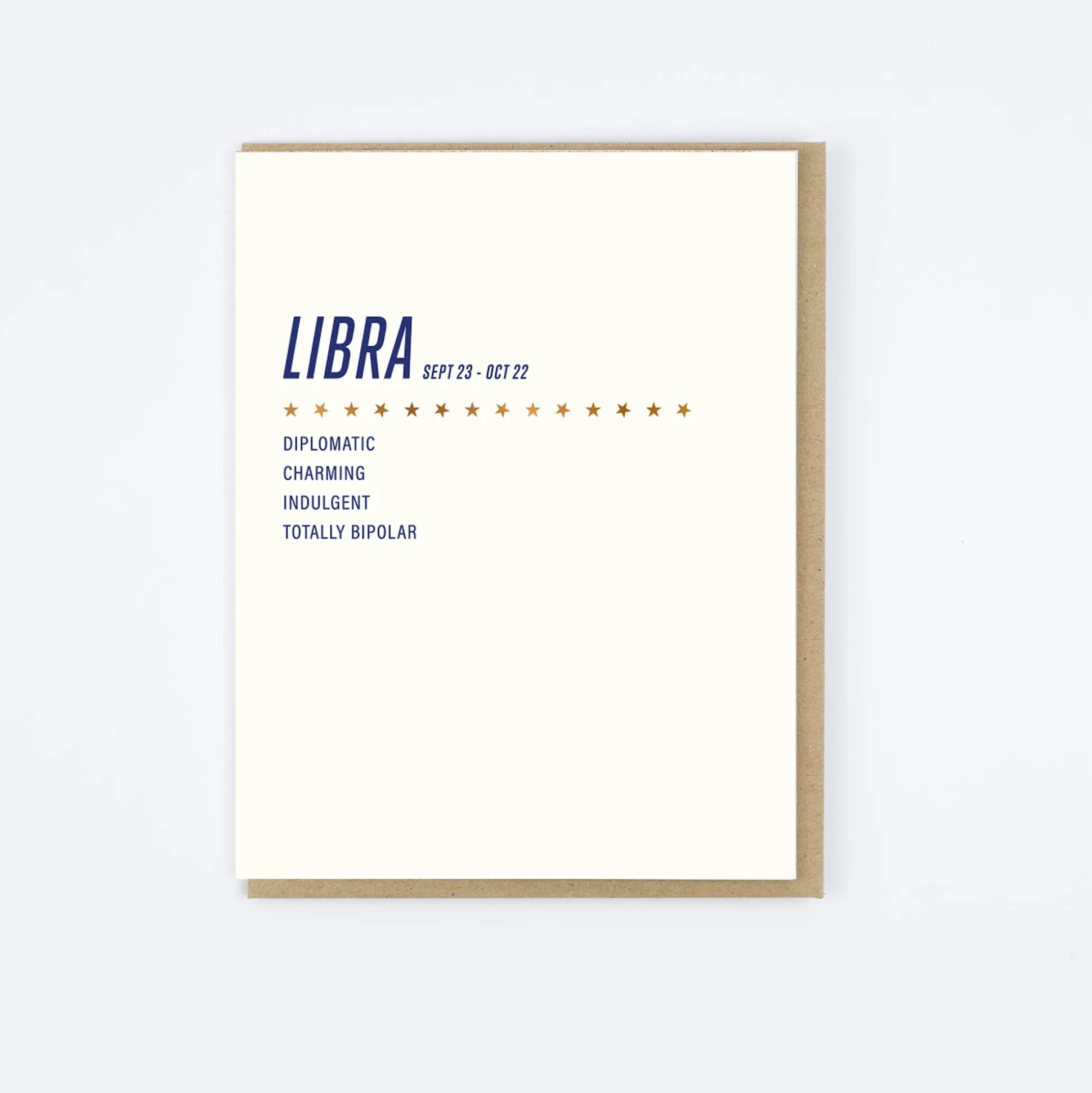5.5″ x 4.25″ letterpress and copper foil card with kraft envelope