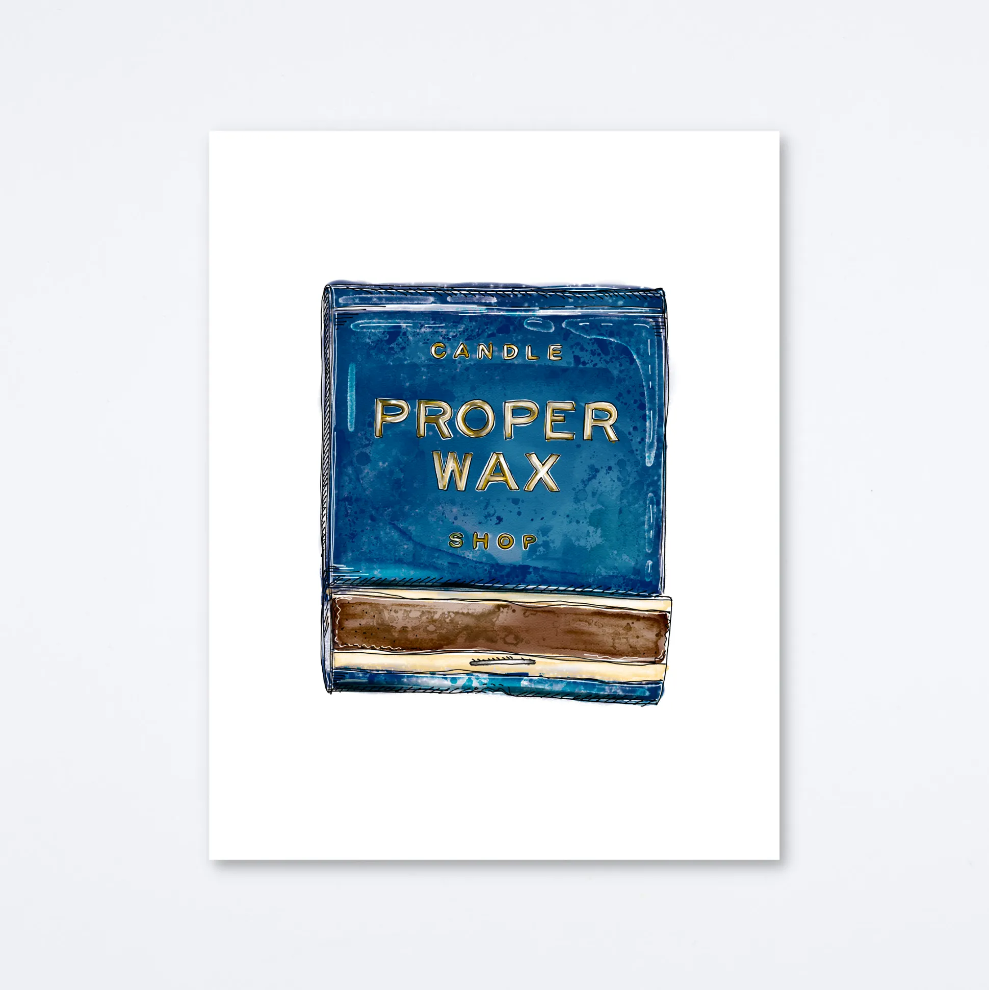 Matchbook print of original watercolor matchbook highlighting the Proper Wax Candle Shop based in Atlanta, GA