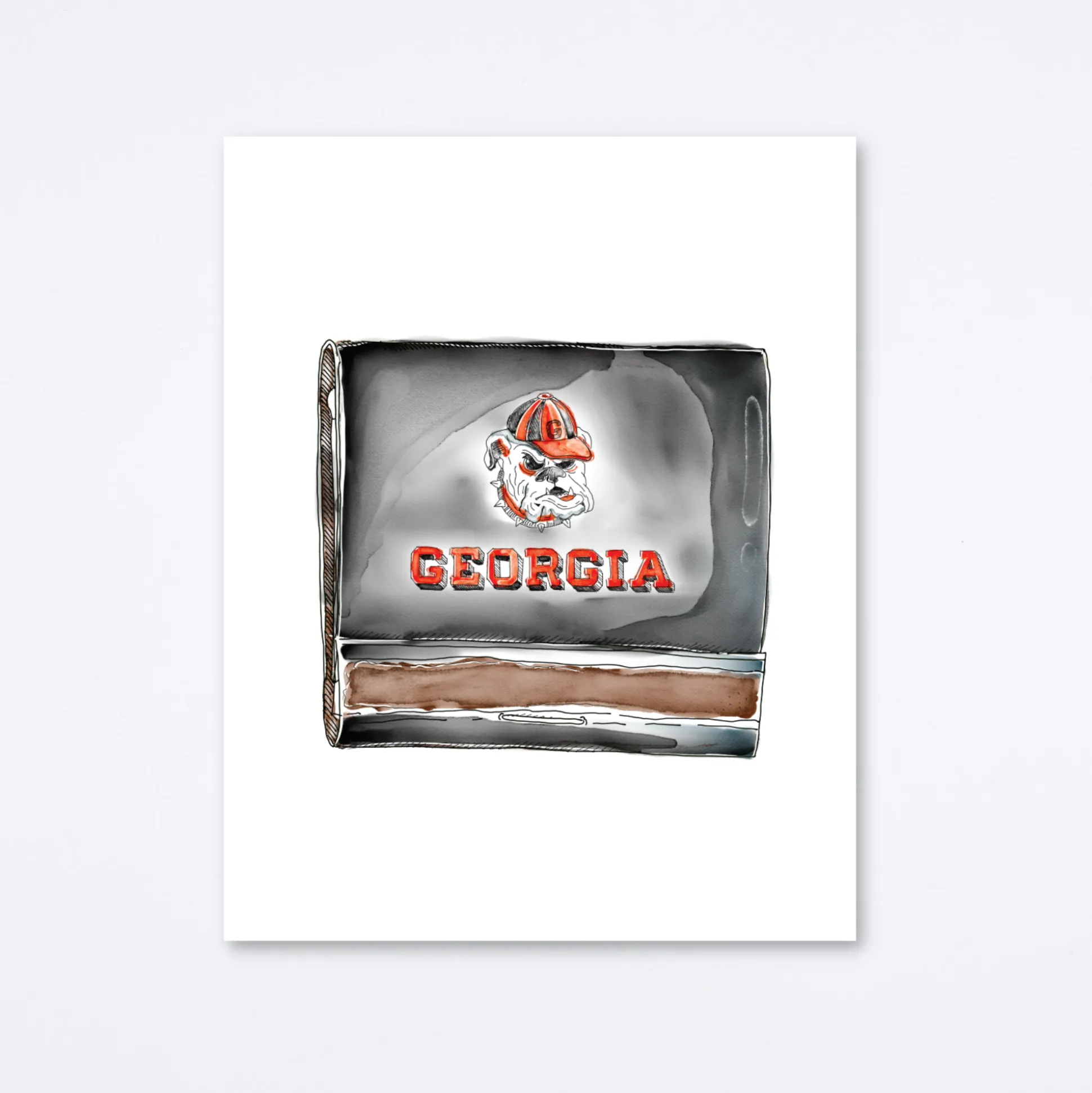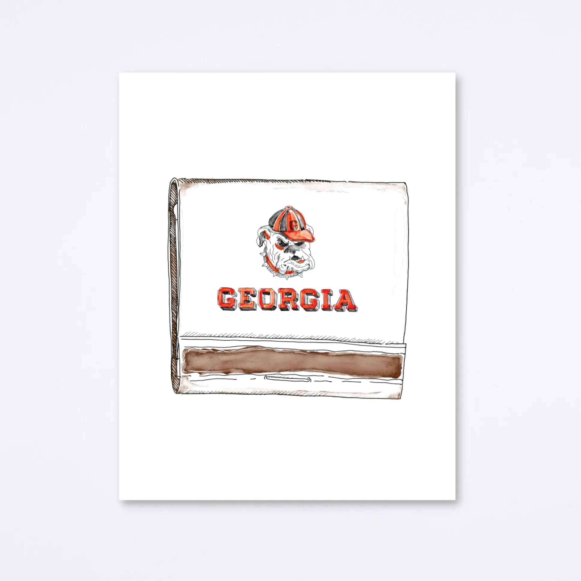 Matchbook print of original watercolor matchbook highlighting the University of Georgia Bulldogs located in Athens, GA
