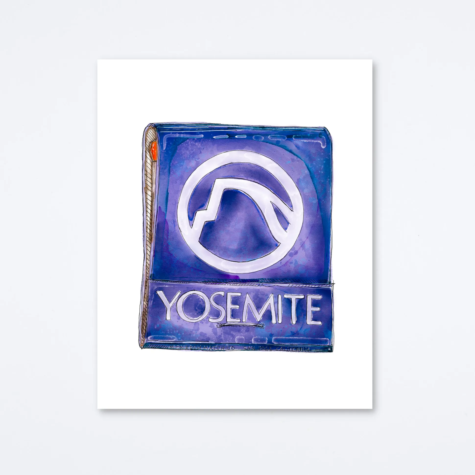Matchbook print of original watercolor matchbook highlighting the Yosemite National Park in California